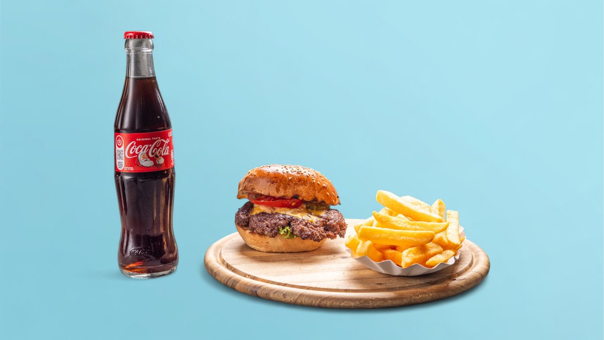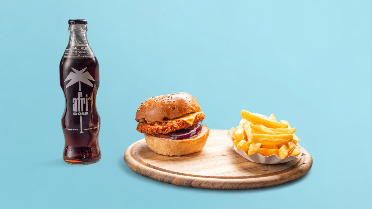 alle Menüs werden mit Pommes frites und einem alkoholfreien Getränk 0,33 l deiner Wahl serviert