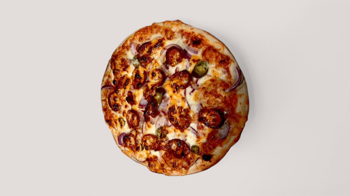 alle Pizzen werden mit einer hausgemachten Soße, frischem Teig, Edamer und frischem Gemüse aus der Region zubereitet und in einer Größe deiner Wahl serviert
