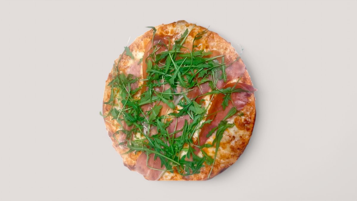 mit Mozzarella, Tomaten, Rucola und Parmaschinken. Verwendete Marke des Parmaschinken:Prosciutto di Parma (Originale Parmaschinken). Unsere Transparenz ist Ihre Zufriedenheit