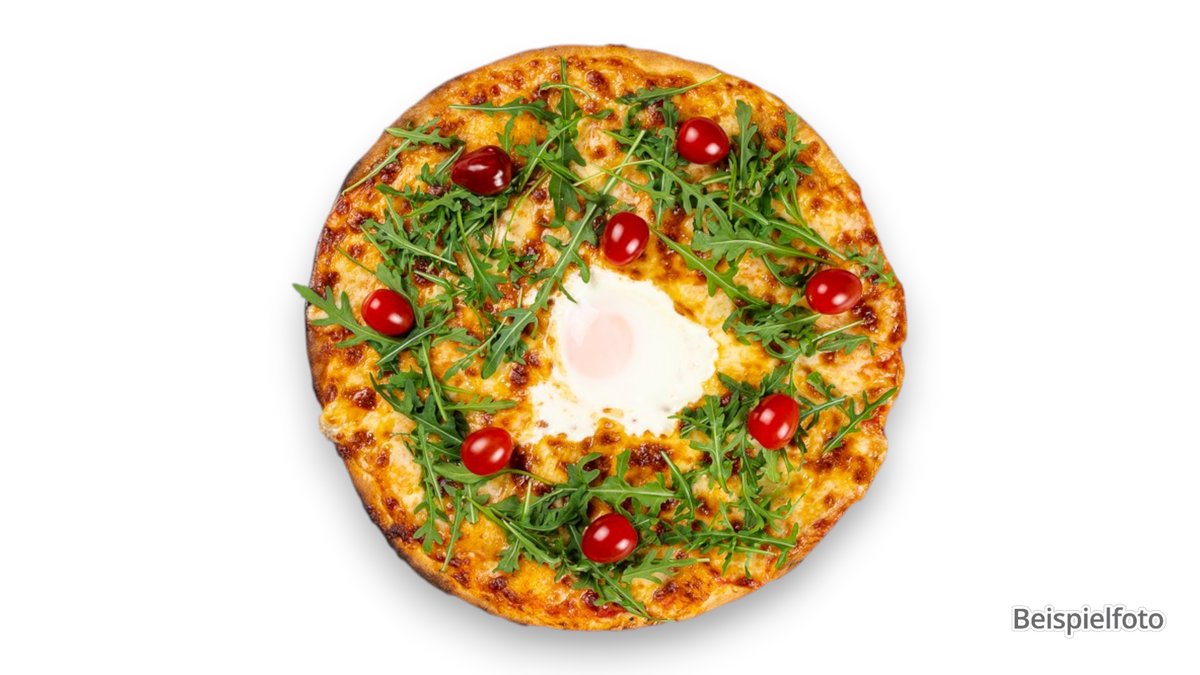 alle Pizzen werden mit Sauce hollandaise, einer hausgemachten Soße, frischem Teig, Edamer und frischem Gemüse aus der Region zubereitet und in einer Größe deiner Wahl serviert