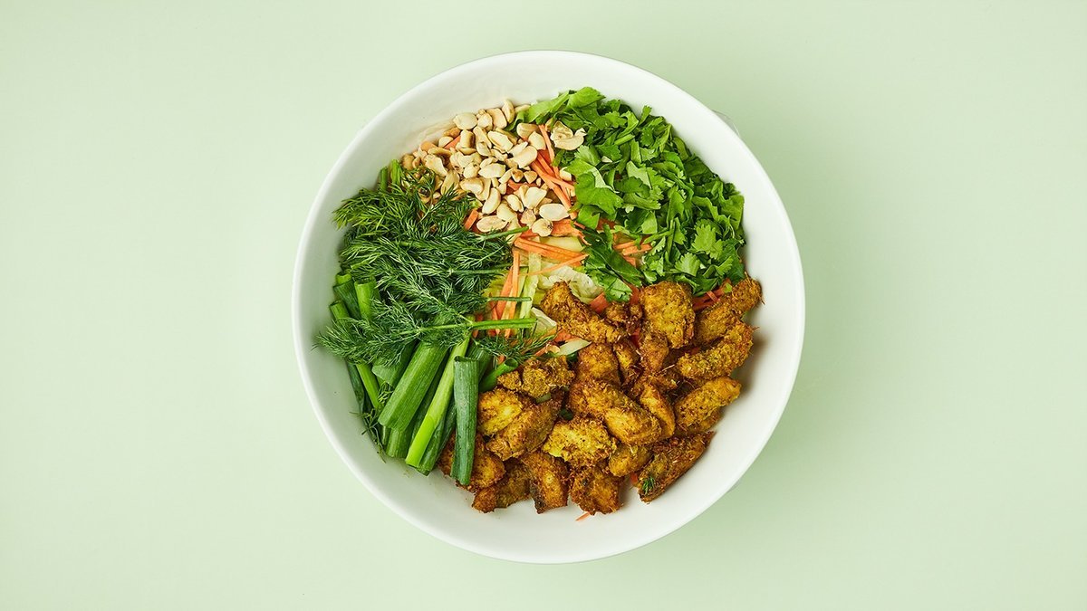 mit Koriander, Zwiebeln und Hähnchenstreifen