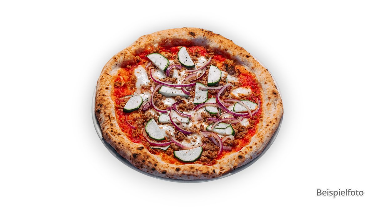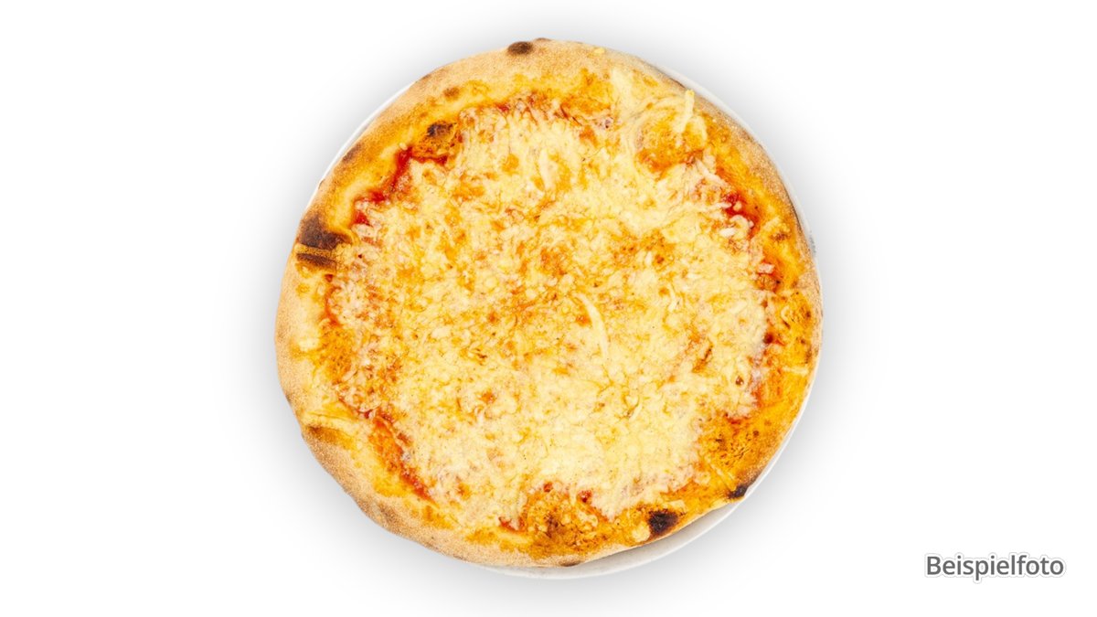 alle Pizzen sind ca. Ø 26 cm groß und werden mit Tomatensoße und Käse zubereitet