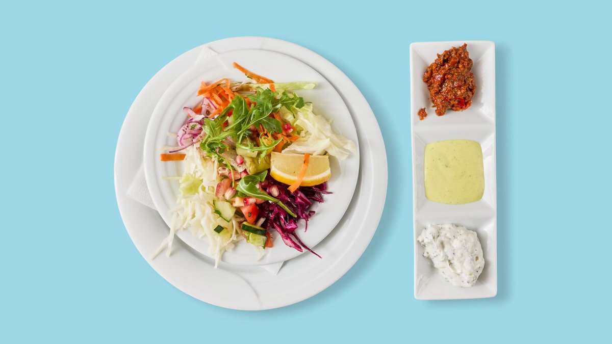 alle vegetarischen Gerichte werden mit Salat und Soße deiner Wahl zubereitet