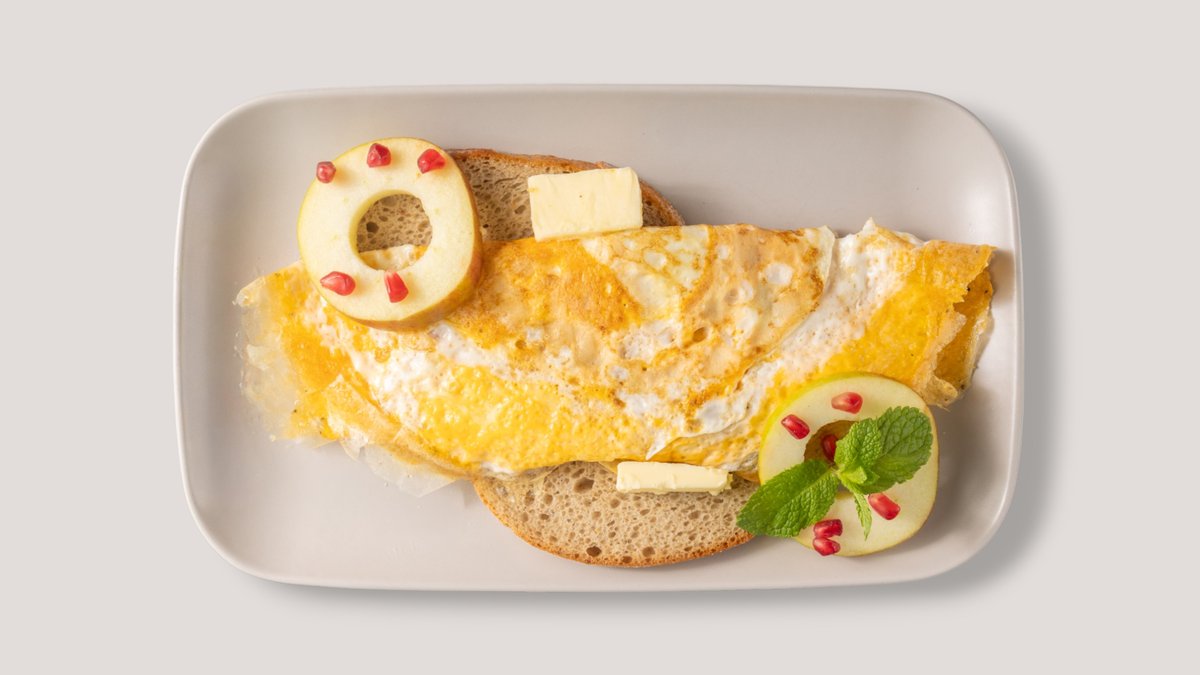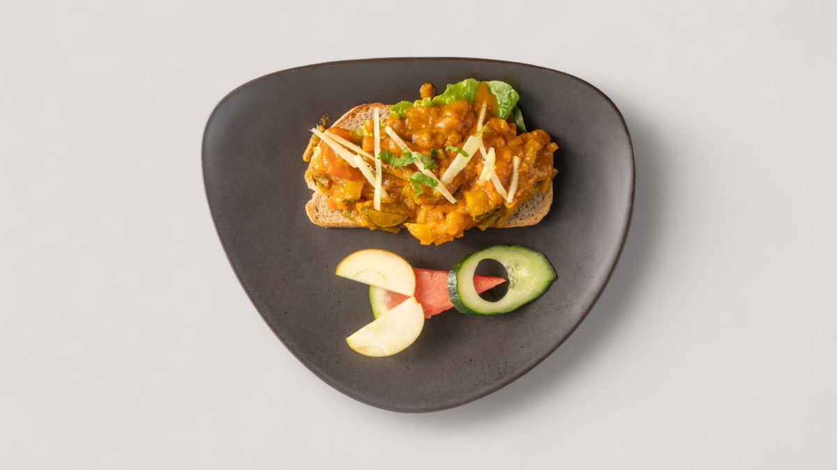 indisches Omelett mit Gewürzen, dazu eine Scheibe Sauerteigbrot