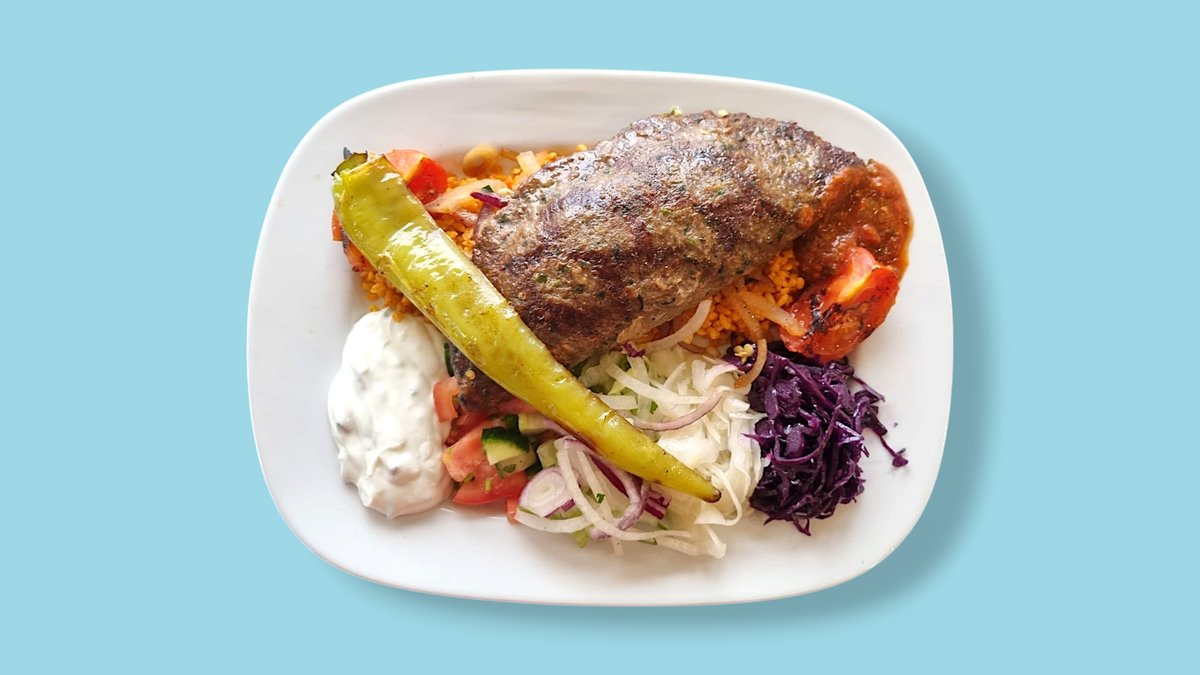 mit Köfte vom gemischtem Lamm- und Kalbfleisch und Metaxasoße Enthält Alkohol, für Kinder und schwangere Frauen nicht geeignet