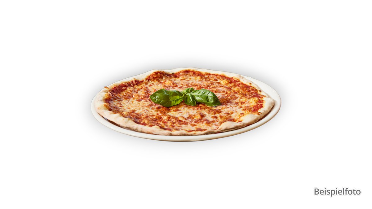 alle Pizzen sind ca. ∅ 28 cm groß und werden mit Tomatensoße und Käse belegt