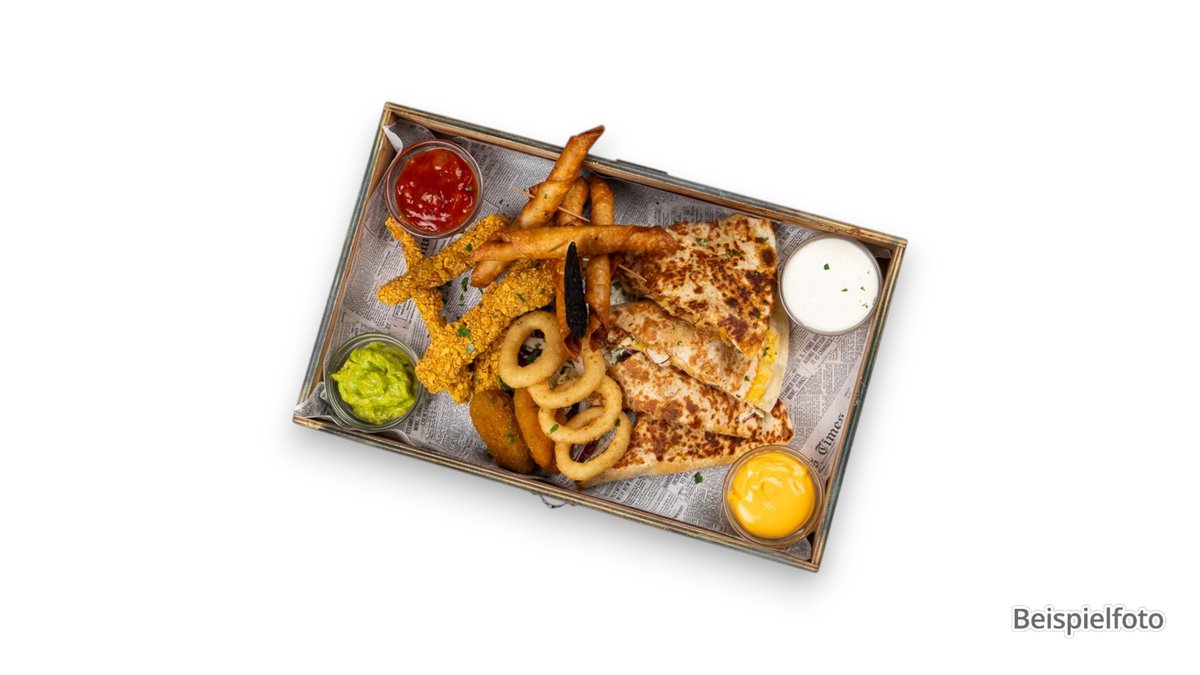 alle Gerichte werden mit Salat und Soße zubereitet („Chili Cheese Hähnchen” wird ohne Salat und Soße zubereitet)
