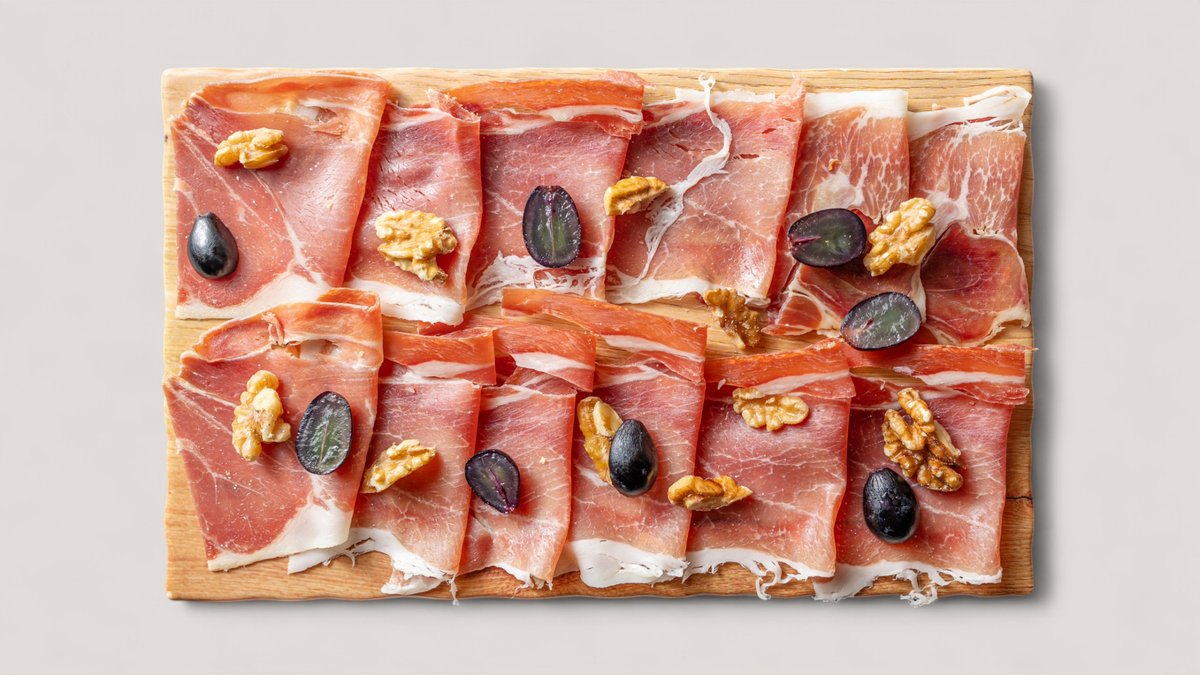 erleben sie den exquisiten Geschmack unseres Serrano Cruce Duroc, ein feiner spanischer Schinken von Schweinen der Duroc-Kreuzung, dieser Schinken ist bekannt für seine zarte Textur und seinen intensiven, nussigen Geschmack