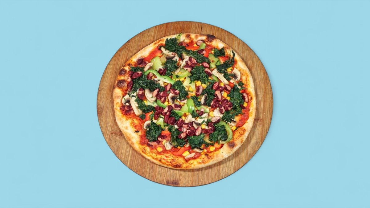 alle Pizzen werden mit hausgemachter Pizzasoße und Edamer zubereitet und in einer Größe deiner Wahl servier („Pizza Vegan” wird ohne Käse zubereitet)