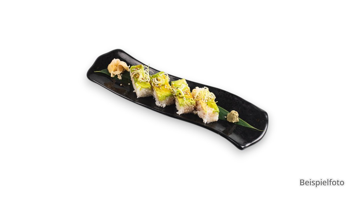 8 Stück flambierter Lachs, Avocado, Gurke & Frischkäse