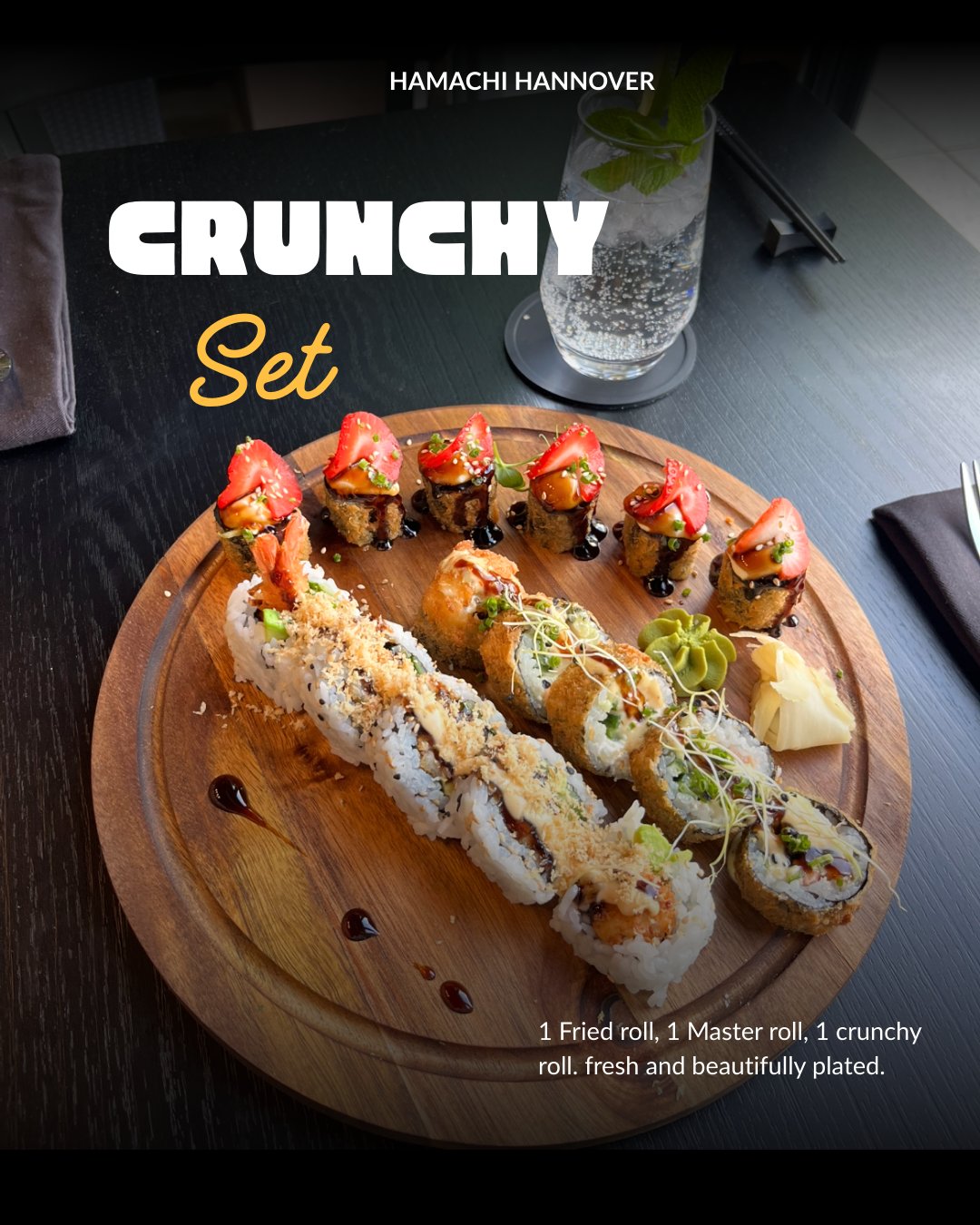 Hamachi Hannover – Frisches, hochwertiges Sushi und kreative Fusion-Rolls, die begeistern. Schnelle Lieferung in Hannover – genieße Sushi in Spitzenqualität jederzeit bei dir zu Hause. Verkäufer: Firma: Kewal Gurung, Anschrift: Nikolaistraße 5 30159 Hanover Germany, Vertretungsberechtigter: Kewal Gurung, Handelsregisternummer: -, E-Mail: support@wolt.com