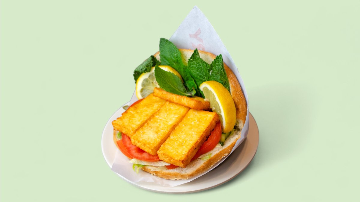 all Halloumi werden mit frittiertem Grillkäse, Salat und Soße nach Wahl serviert
