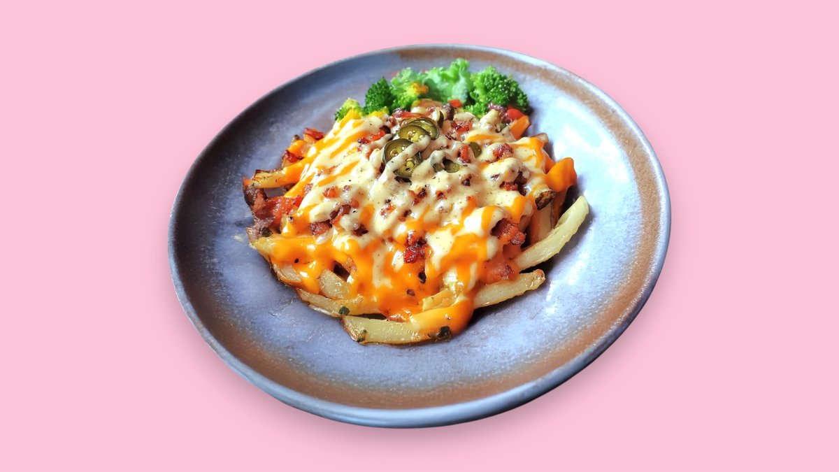 150 g Rindfleisch mit Cheddar-Chester-Soße, Jalapeños, Salat und Nachos Aufgrund der Art und Weise der Aufbewahrung können die Produkte mit Nüssen in Kontakt kommen
