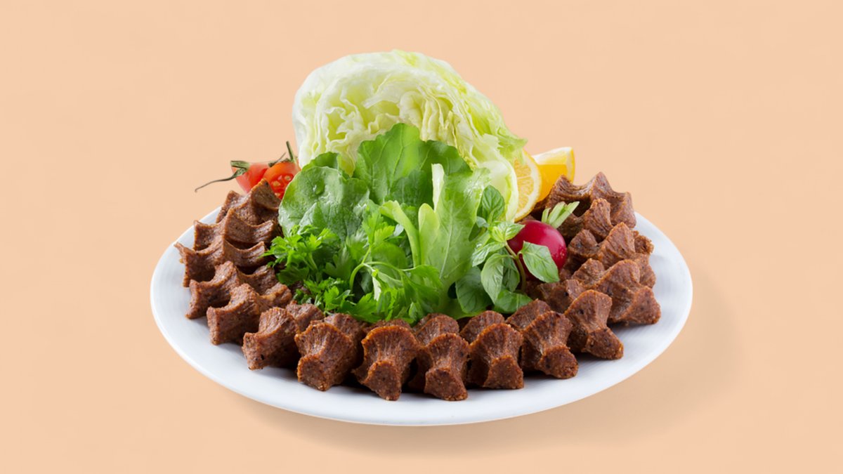 mit gemischter Salat Art des Hauses, 4 Falafel, 4 Vegan Nuggets, 4 Stück Cigköfte, 1 Tortila und 2 kleine Granatapfelsoßen