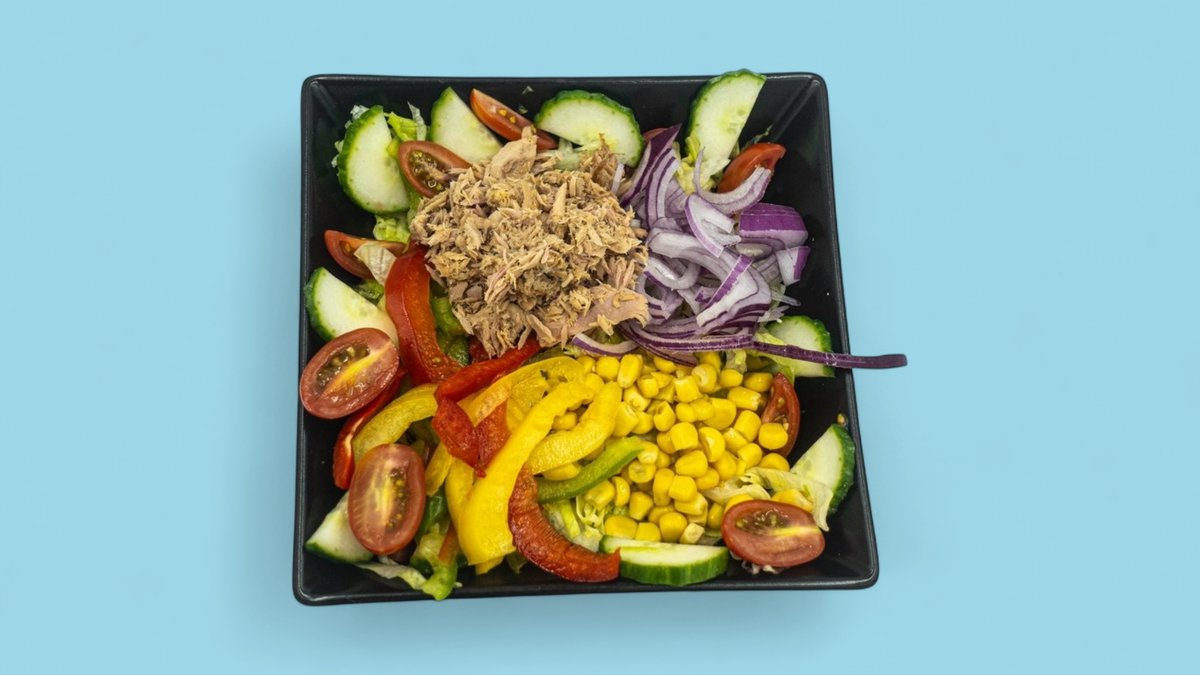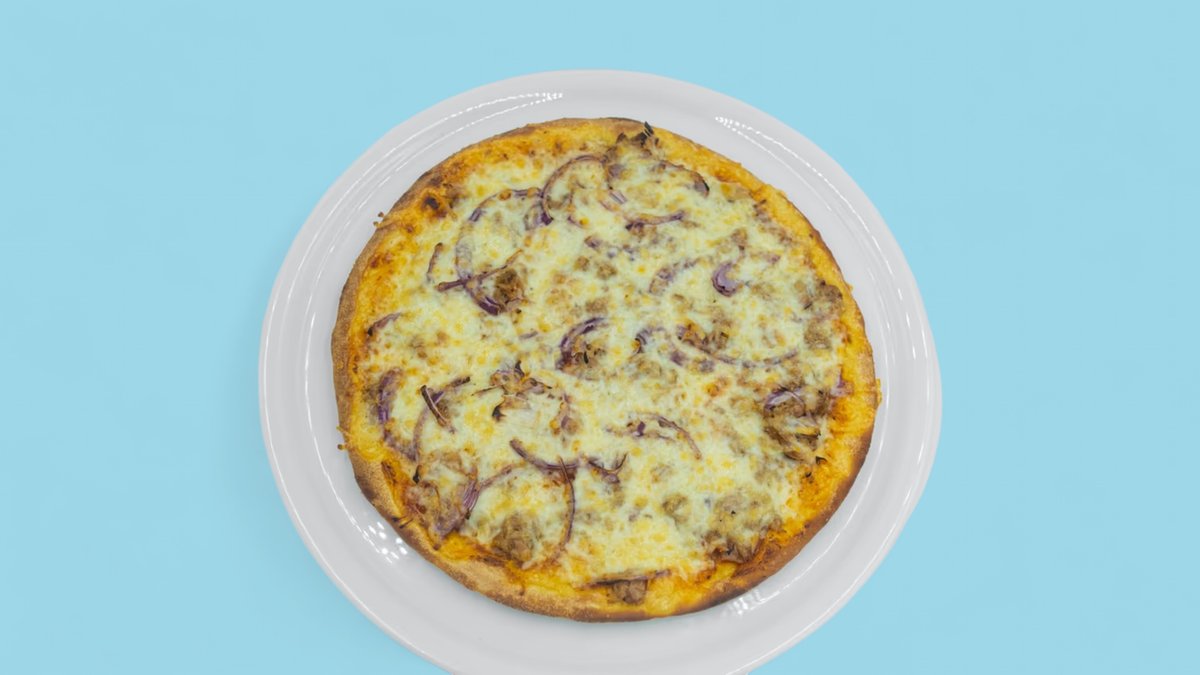 mit Thunfisch, Mais, Zwiebeln und Paprika
