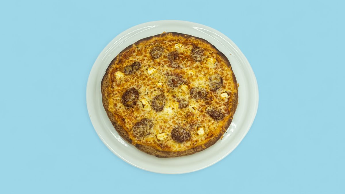 mit Gyros, Salami, Schinken, Zwiebeln, Tomaten, Hirtenkäse und Mozzarella