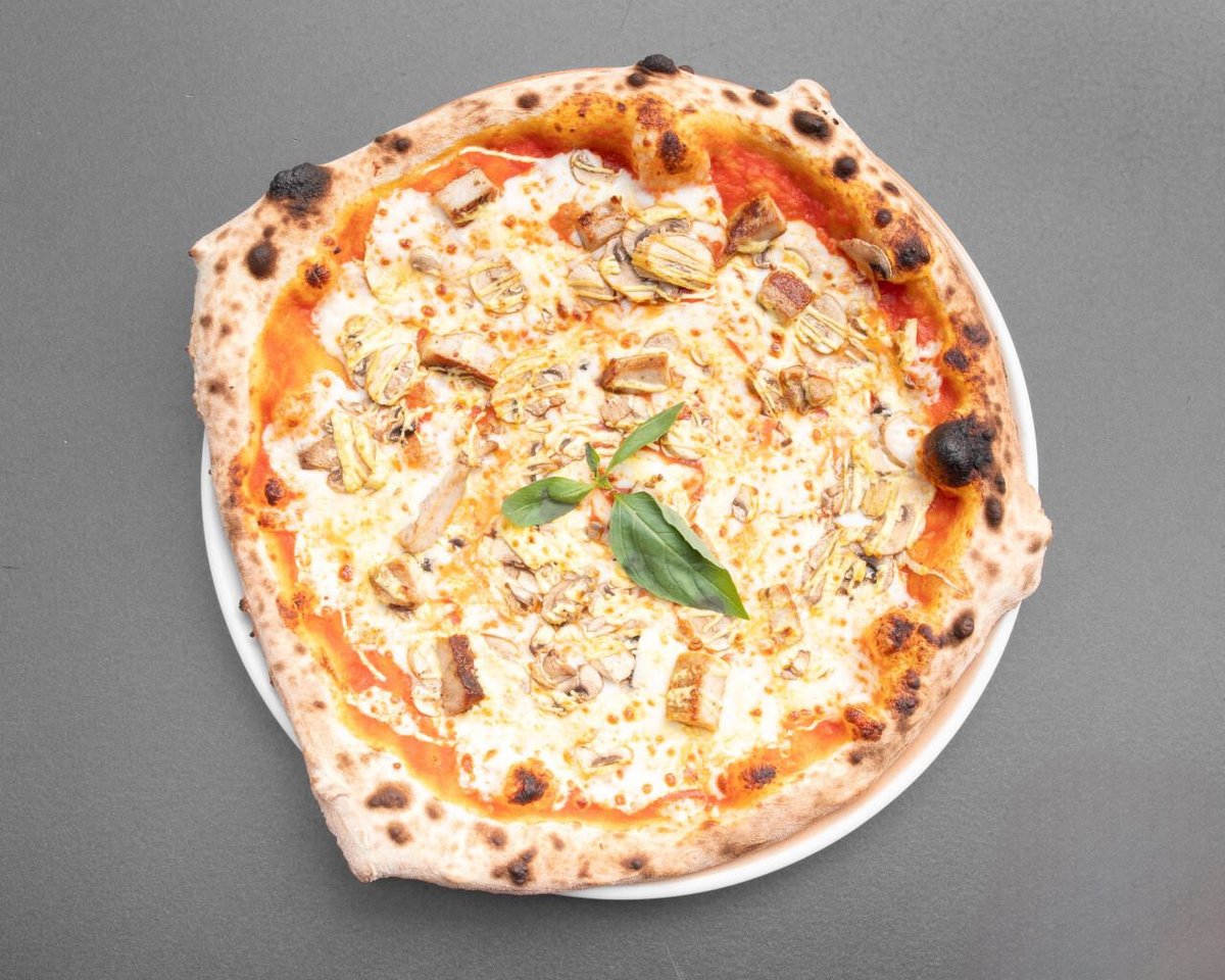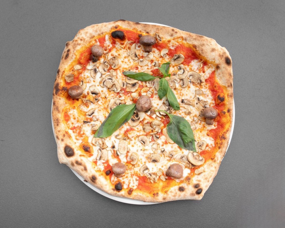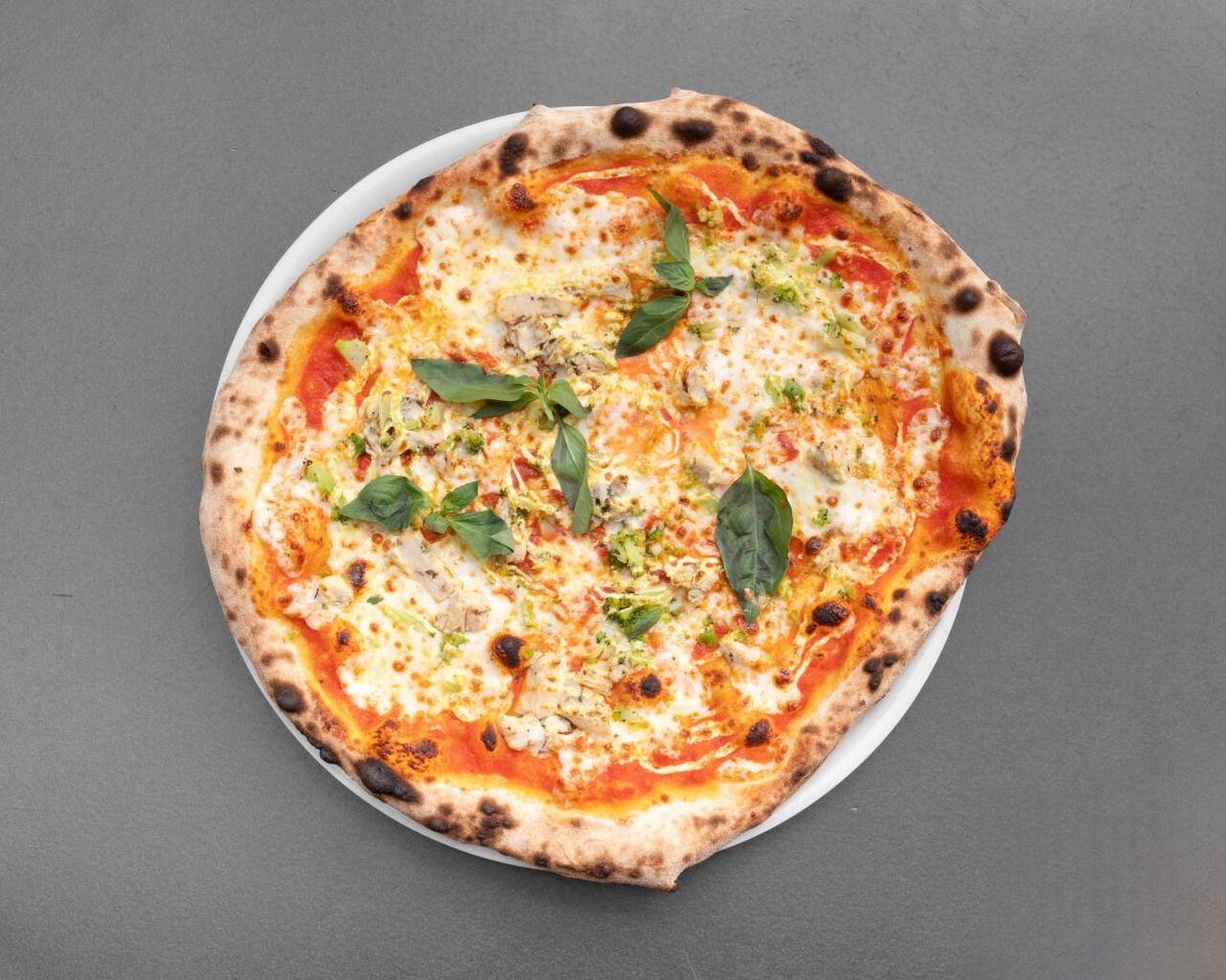 alle Pizzen sind ca. Ø 32 cm groß und werden mit hausgemachter Tomatensoße, Fior di Latte und kaltgepresstem Olivenöl zubereitet