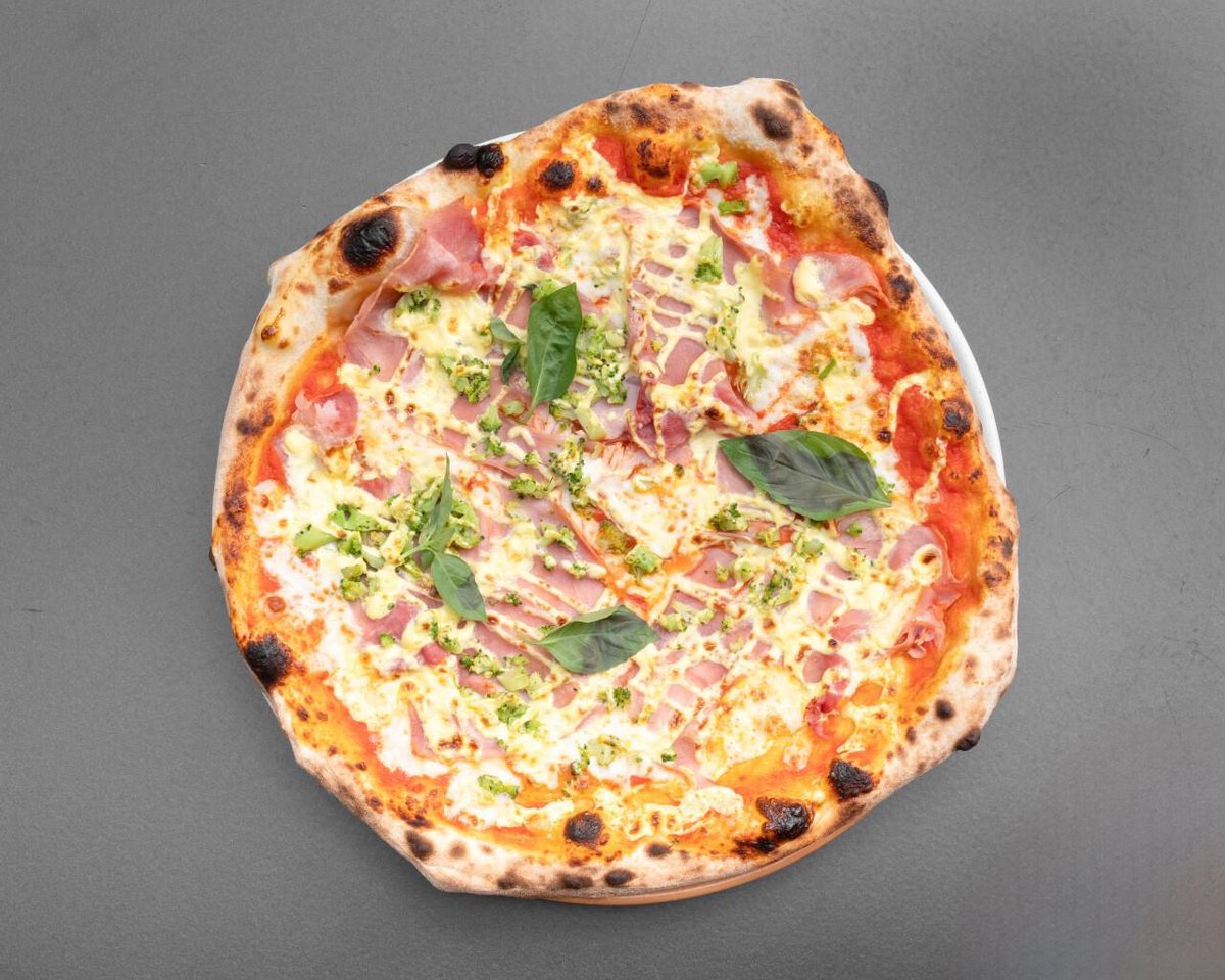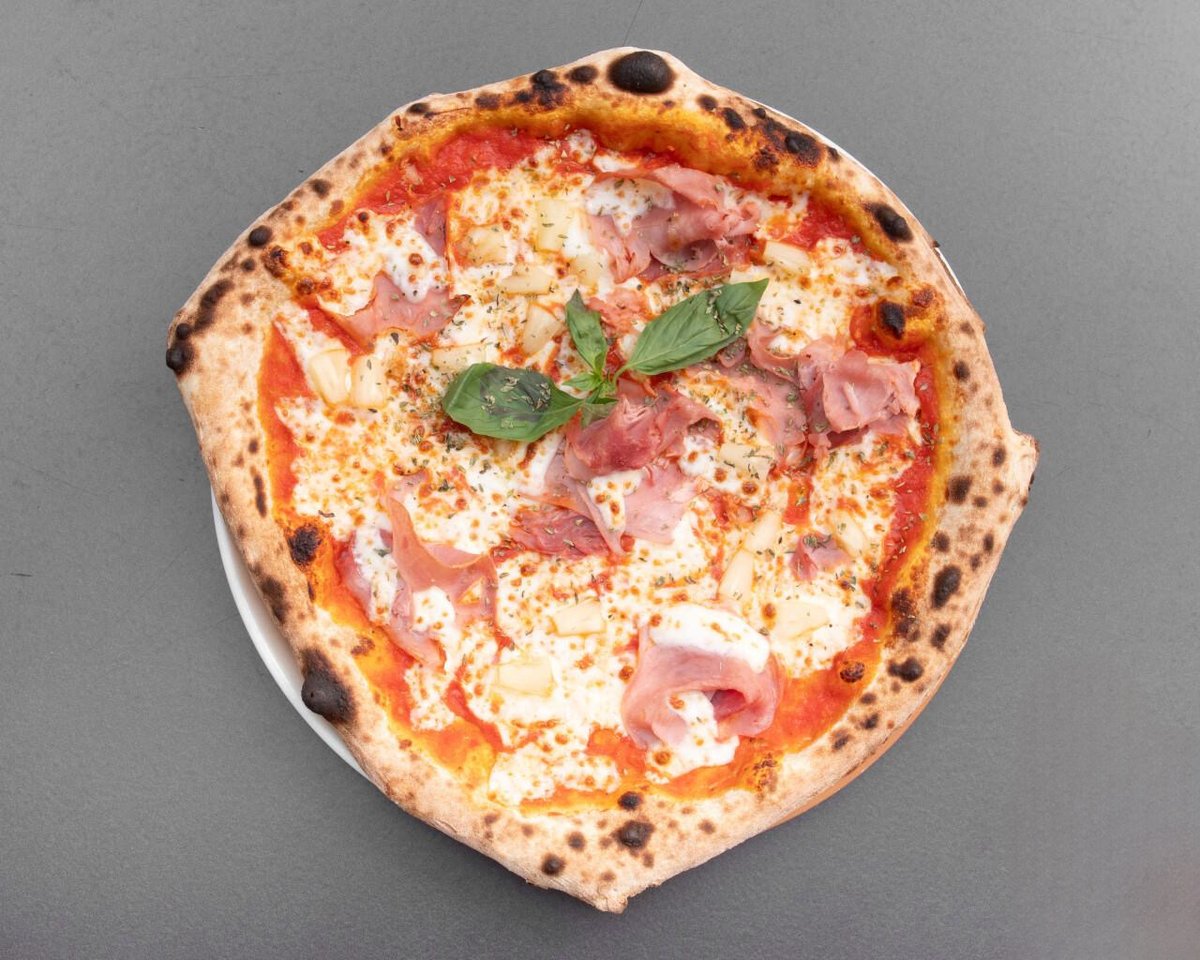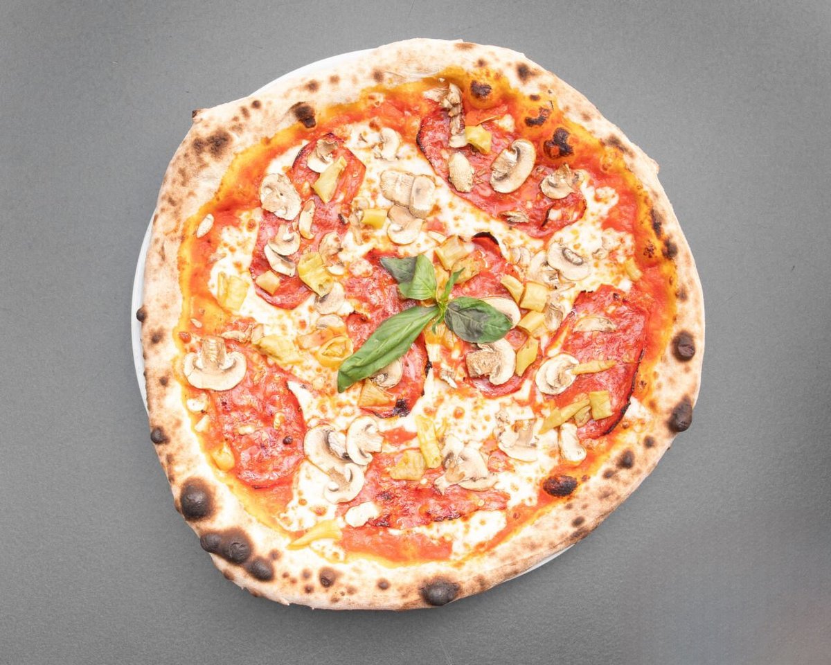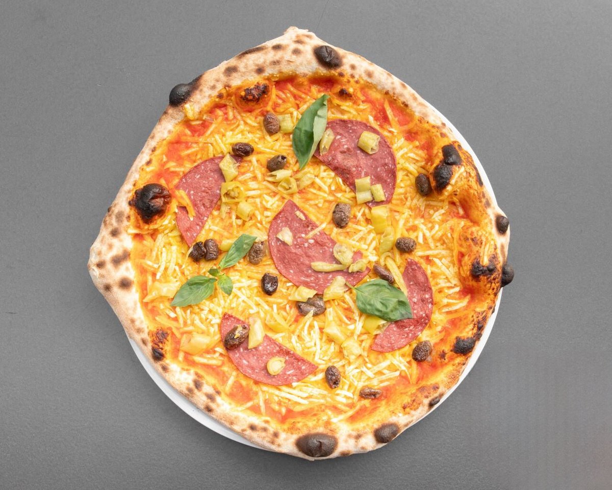 alle Pizzen sind ca. Ø 32 cm groß und werden mit hausgemachter Tomatensoße, Fior di Latte und kaltgepresstem Olivenöl zubereitet