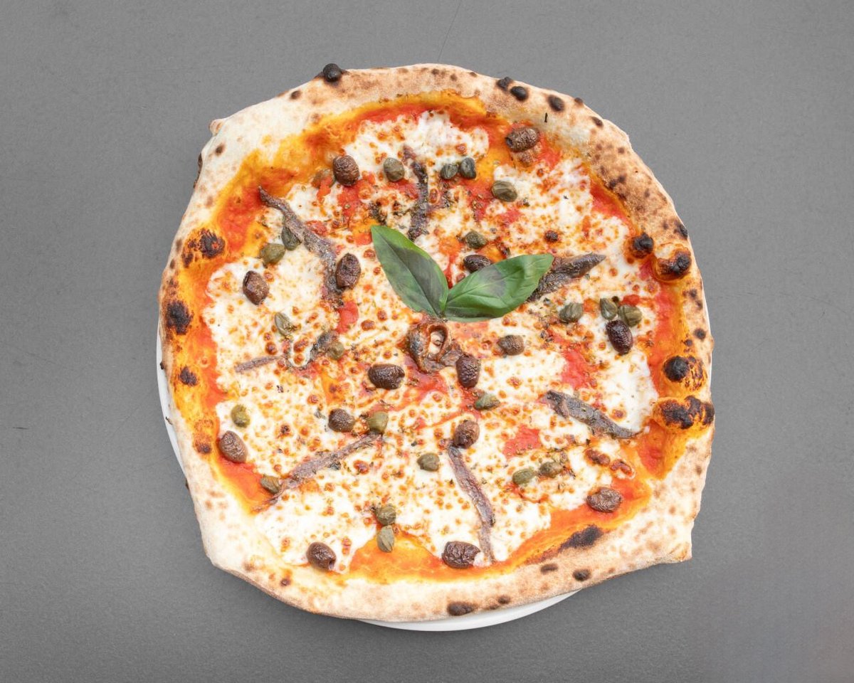 mit Sardellen, Kapern, schwarzen Oliven und Oregano
