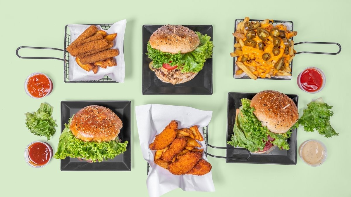 mit einer Brotsorte, Patty und einer Soße deiner Wahl