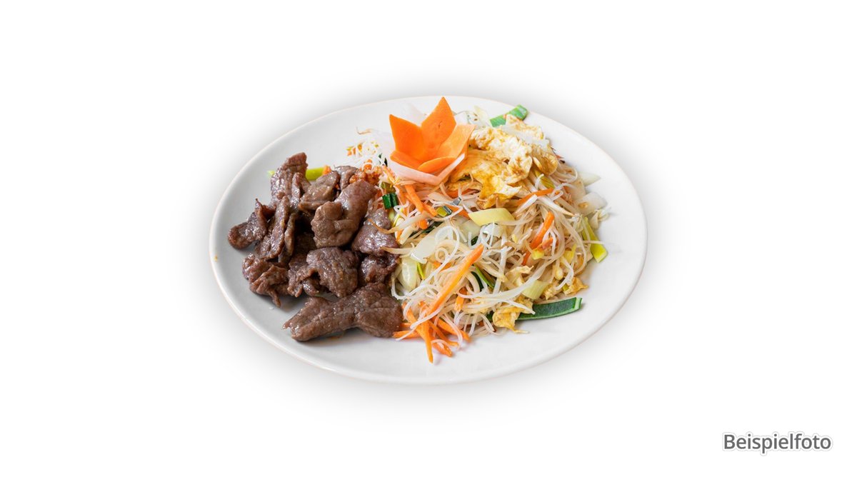 gebratene Glasnudeln mit Gemüse und Rindfleisch