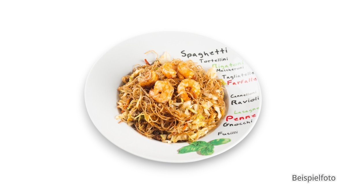 mit Glasnudeln, Bambus, Zwiebeln, Champignons, Porree und Sojasprossen