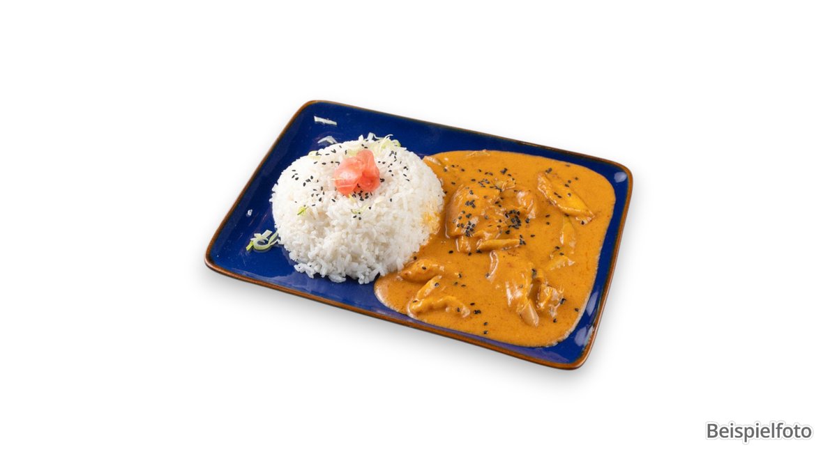 mit Hähnchenfleisch, Garnelen und Currypulver