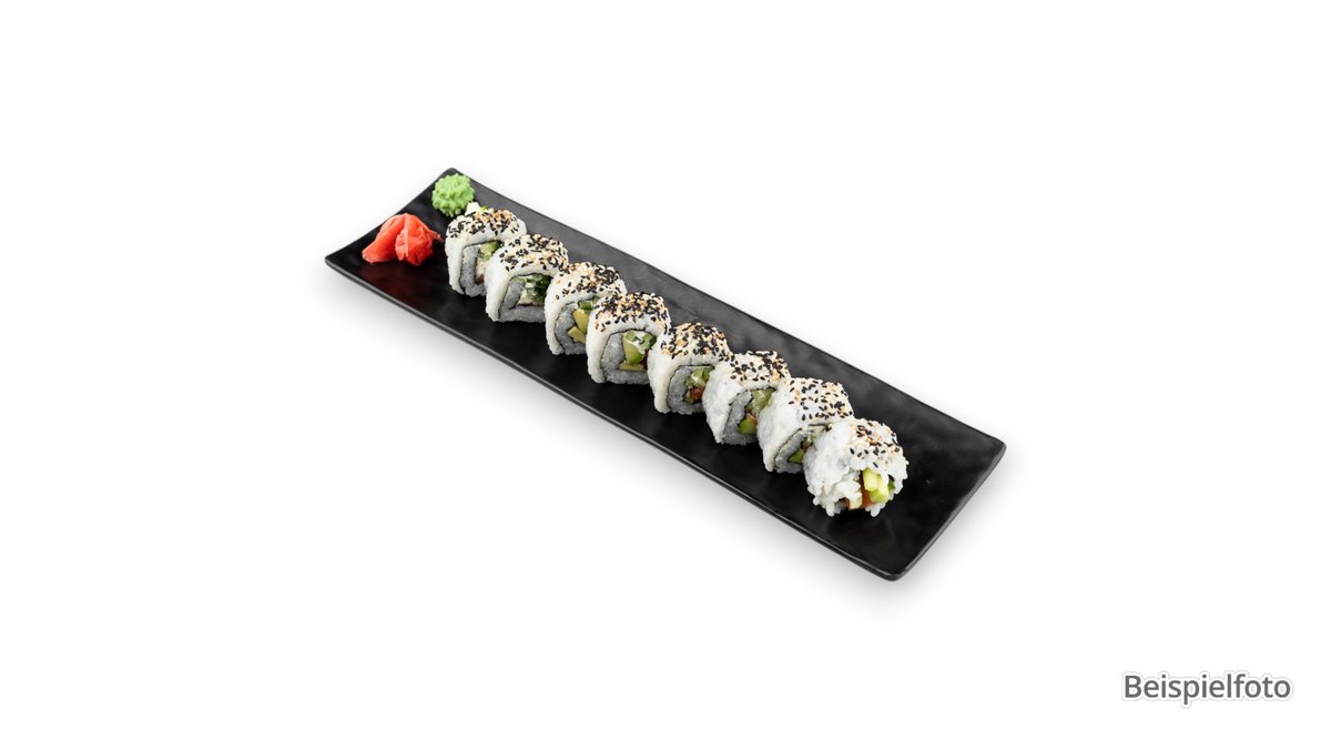 20 Stück 8x Mango Inside Out (mit Rucola, Frischkäse, Mango und Sesam) 6x Kappa Maki mit Frischkäse 6x Avocado Maki