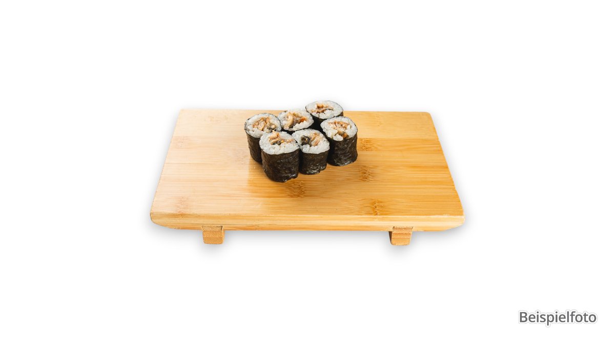 jede Portion enthält 6 Stück und wird in Seetangpapier mit verschiedenen Füllungen zubereitet