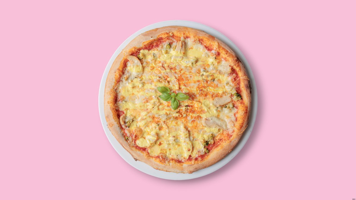 alle Pizzen werden mit hausgemachter Tomatensoße und Milram Edamer 40% zubereitet und in einer Größe deiner Wahl serviert