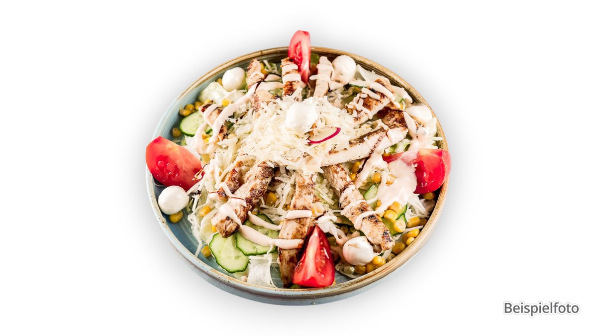 alle Salate werden mit einem Dressing und in einer Größe deiner Wahl serviert