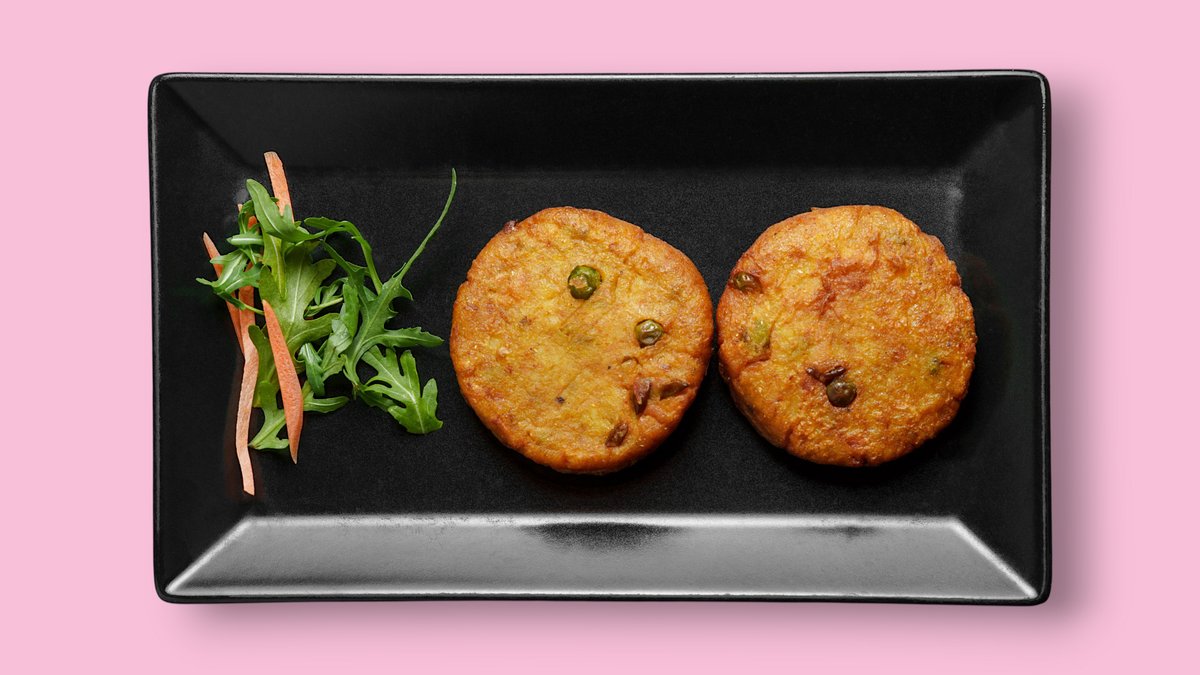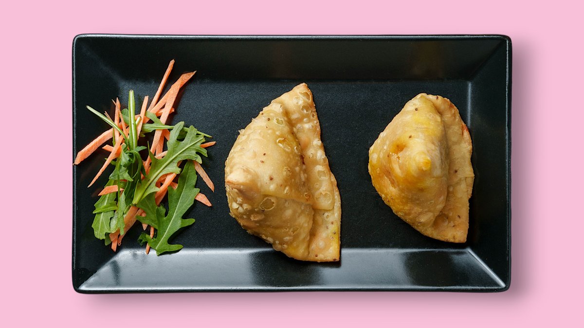 2 Stück gefüllte Teigtaschen mit Kartoffeln und Erbsen