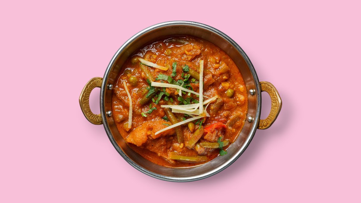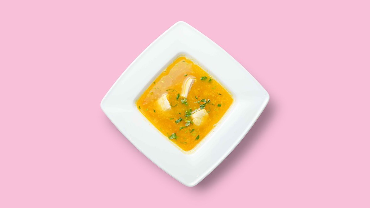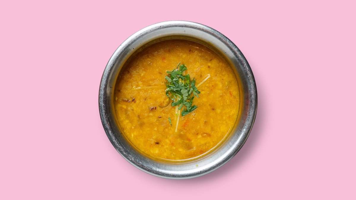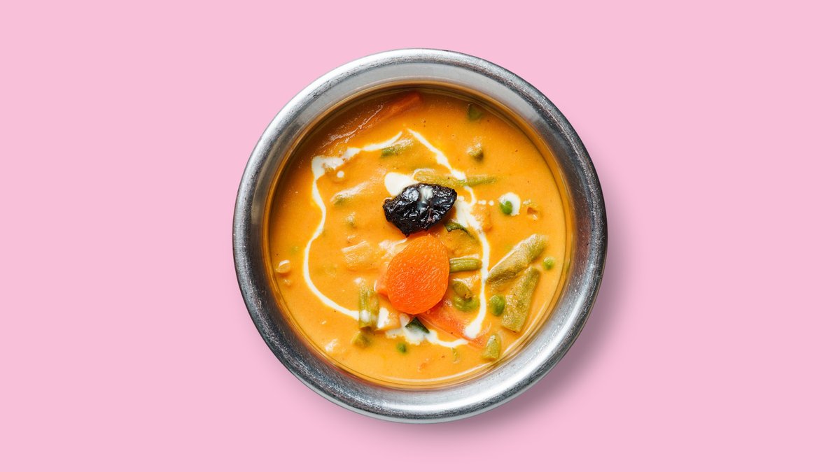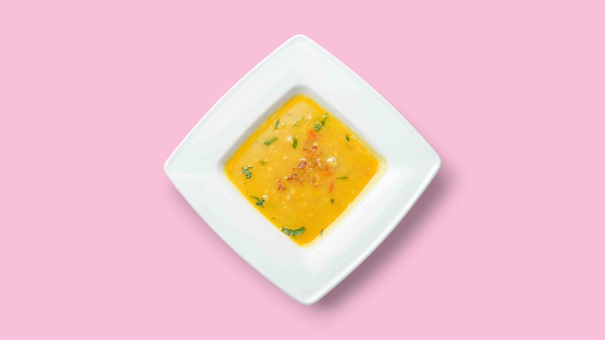 indische Currysuppe mit Hähnchen, Reis und Koriander