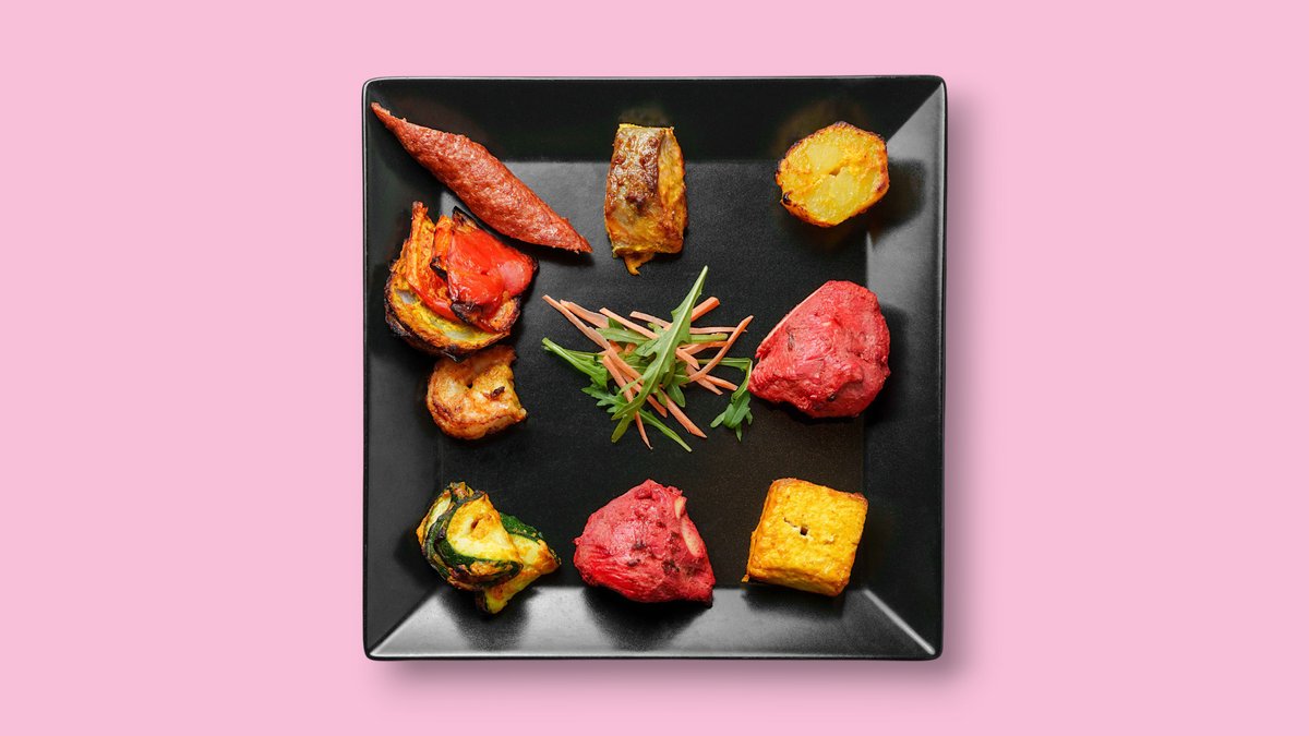 gemischte Vorspeisen-Teller mit Hähnchen, Lamspieß, Fisch und Gemüse