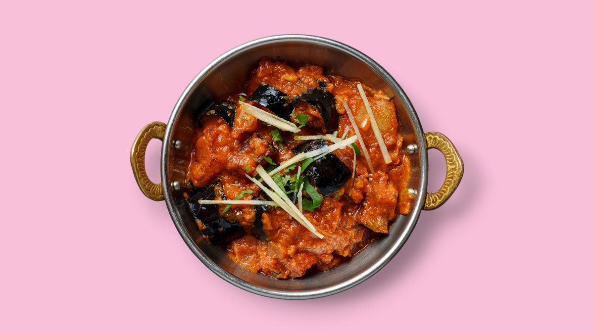 Auberginen und Kartoffeln angebraten mit Kümmel, Ingwer und Tomaten