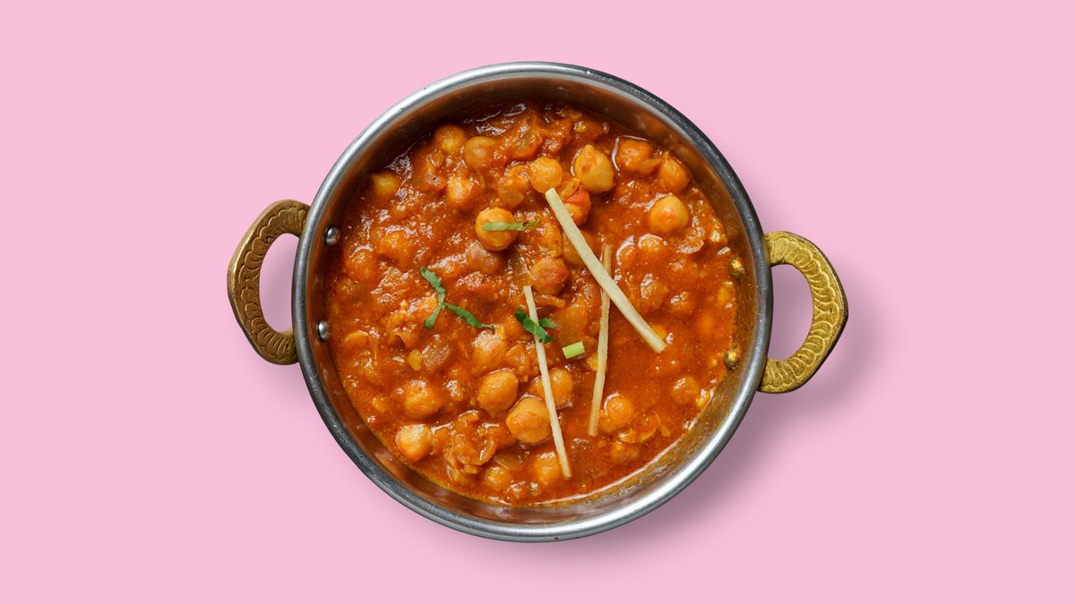 gebratene Kichererbsen mit Zwiebeln, Ingwer und Kümmel