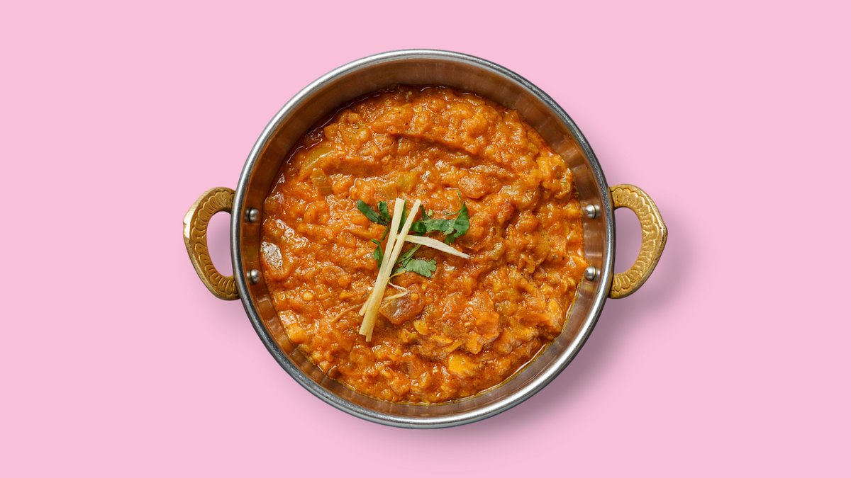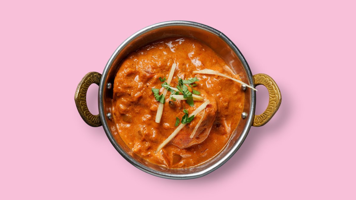 Tandoori-Hähnchenstücke gebraten in Tomaten, Zwiebeln, Ingwer, Koriander und Joghurtsoße
