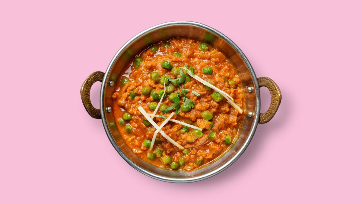 Sojahack gebraten mit Erbsen, Knoblauch und Zwiebeln