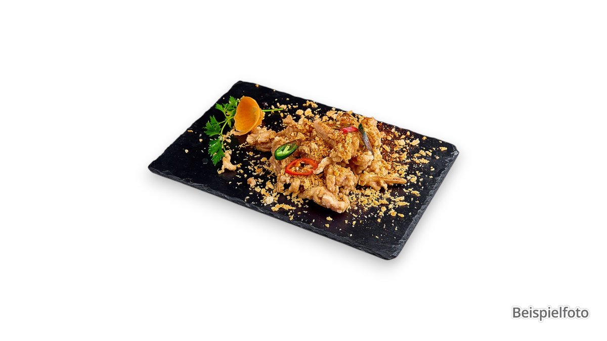scharf knusprig gebacken mit Gemüse und Knoblauch