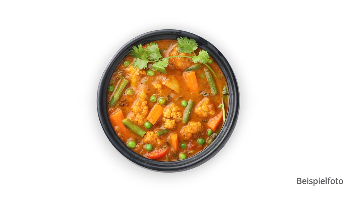 mit verschiedenen Gemüsesorten, Joghurt und Kokosgetränk in milder Korma-Curry