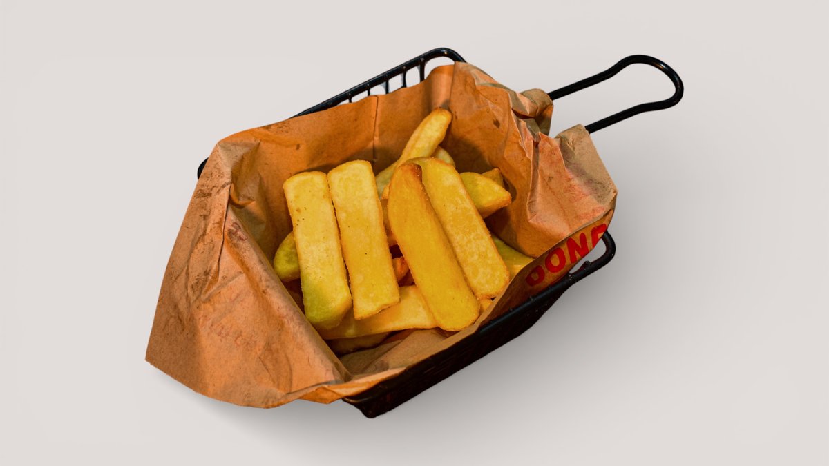 knusprige SĂĽĂźkartoffel-Pommes, goldbraun frittiert, leicht sĂĽĂźlich
