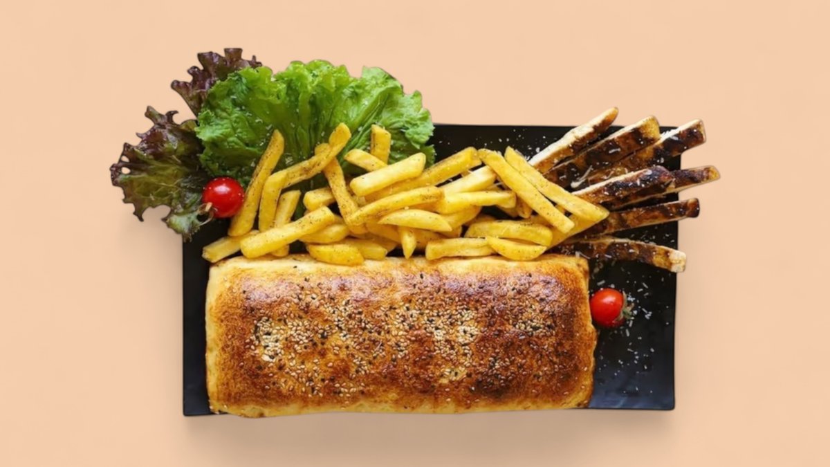 Pommes,Mozzarella, mix Rind-Hähnchen Schicken,Paprika,Mais