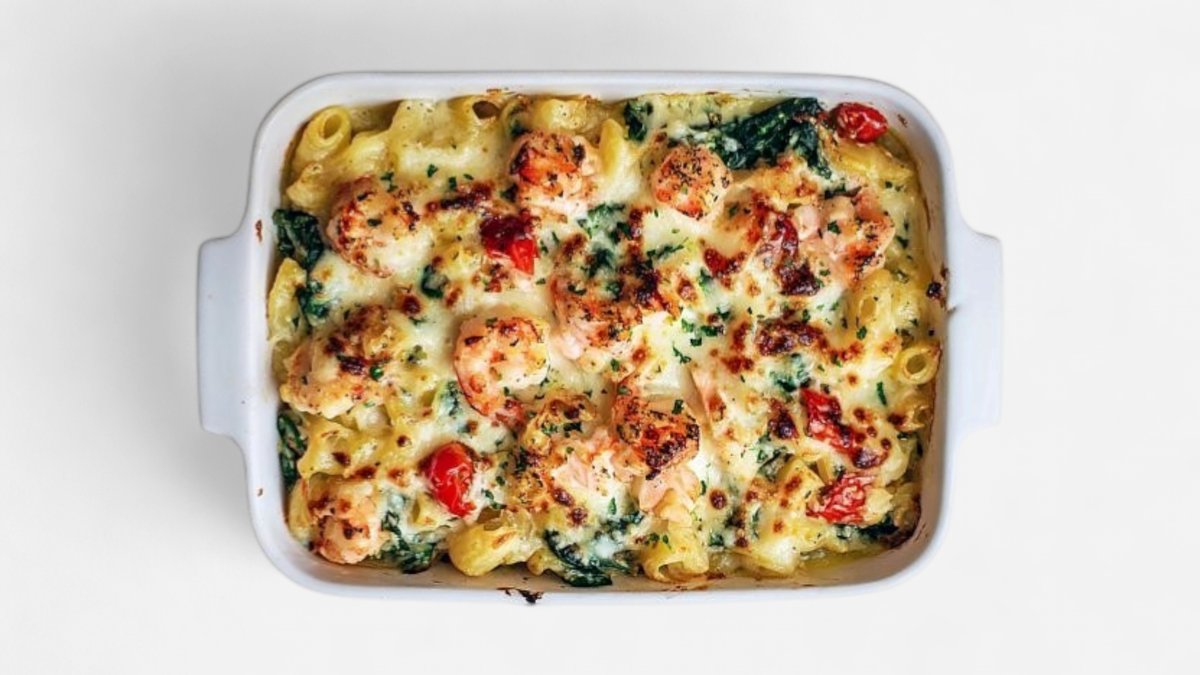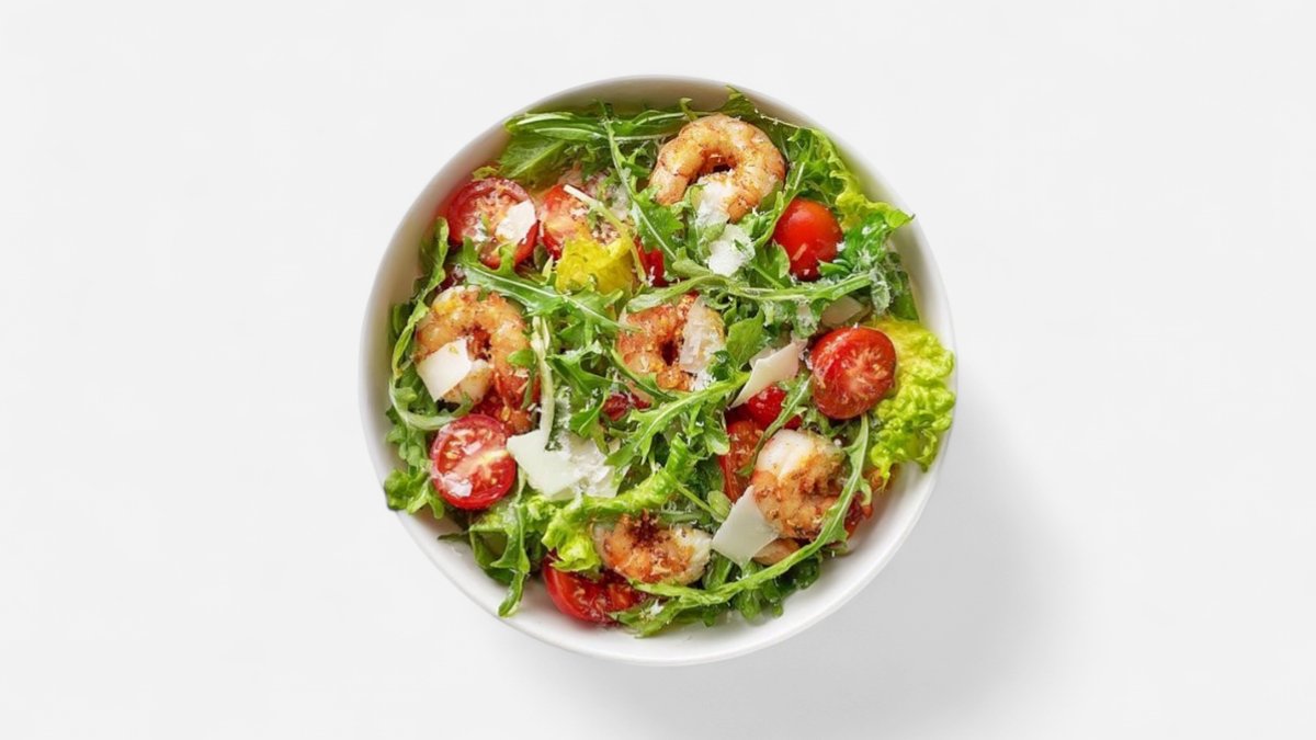 mit Kirschtomaten, Garnelen mit Knoblauch, Rucola und Grana Padano