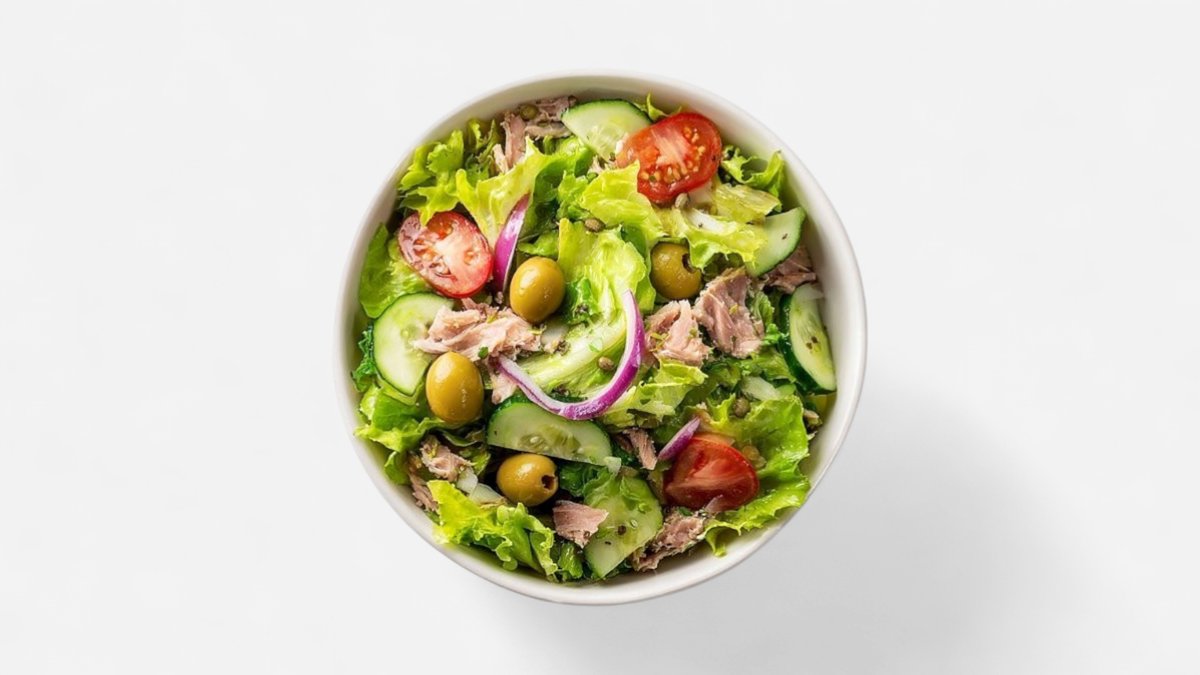 mit Tomaten, Gurken, Oliven, Zwiebeln und Thunfisch