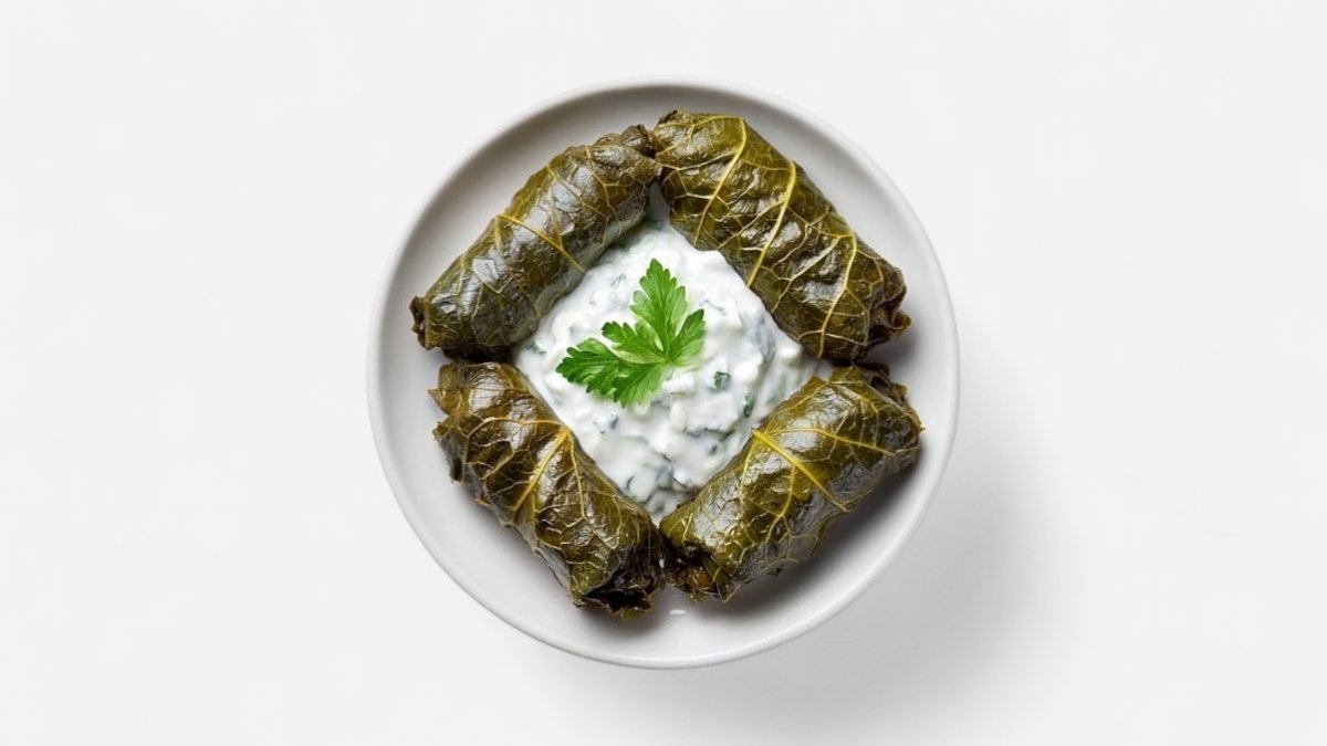 mild mit Kirschtomaten, Gurken, Oliven, Peperoni, Weinblättern und Hirtenkäse