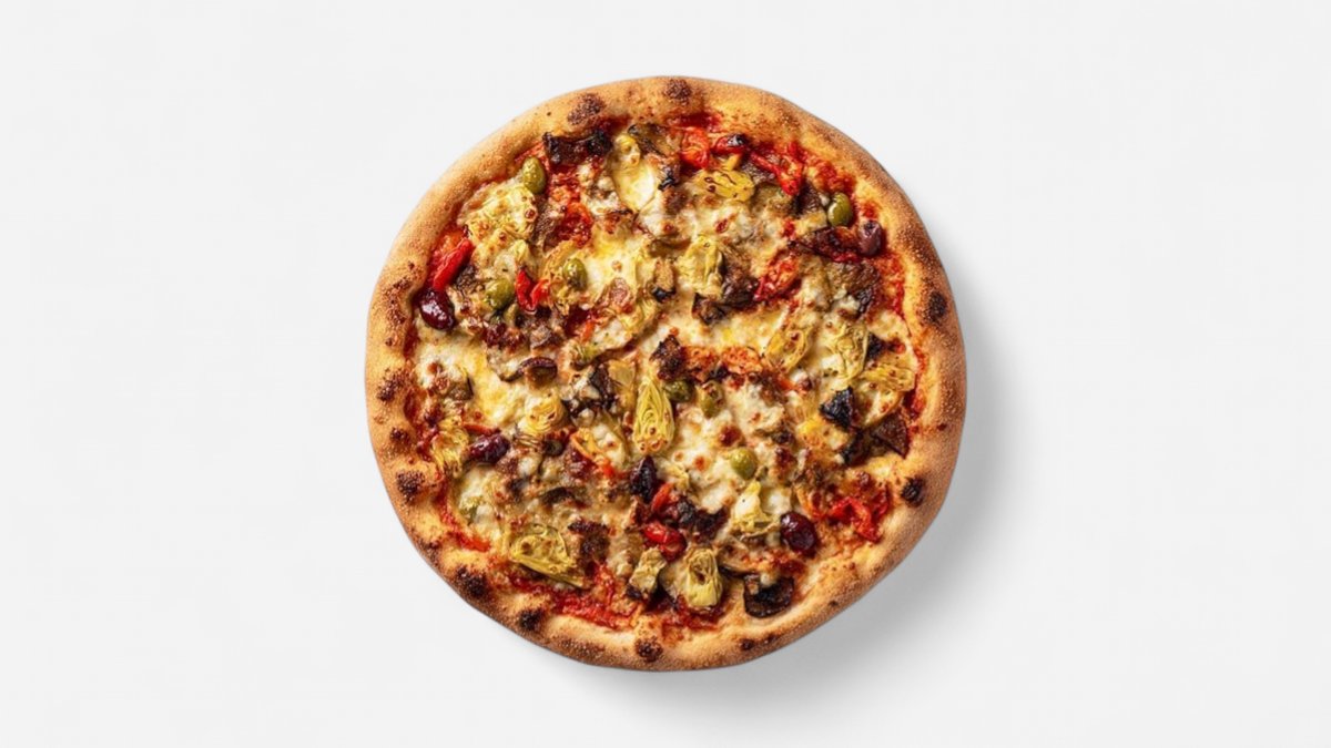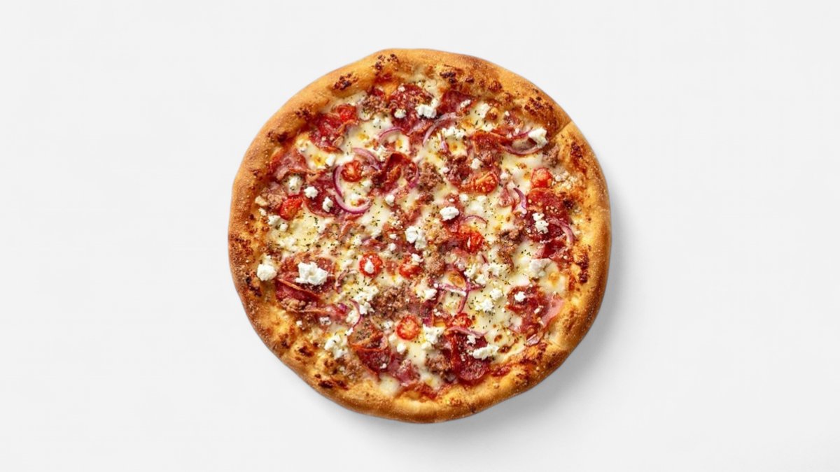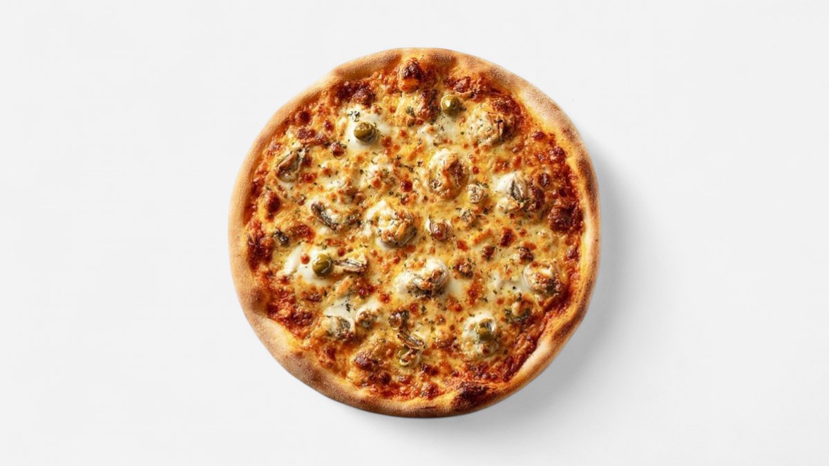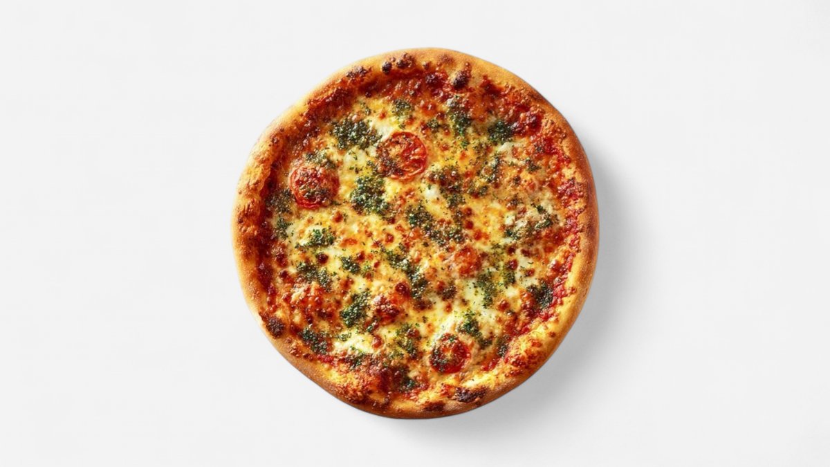 alle Pizzen werden mit Gouda, Pizzasoße und in einer Größe deiner Wahl zubereitet