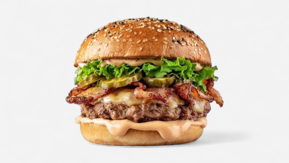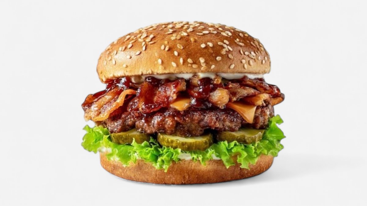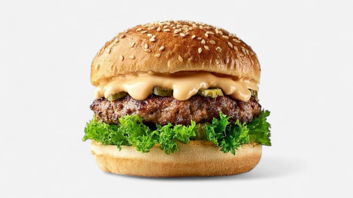 mit einem Burger Normal und einer Beilage deiner Wahl
