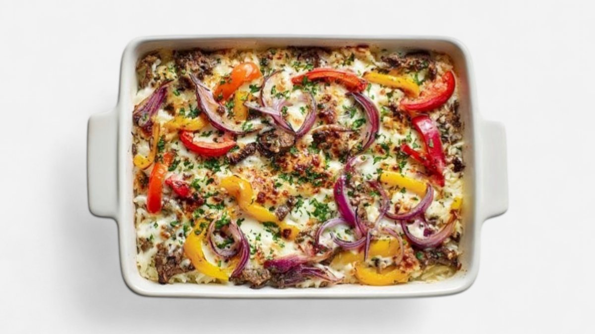 mit Gyros-Spieß, Mais, Zwiebeln, Paprika und Sahnesoße