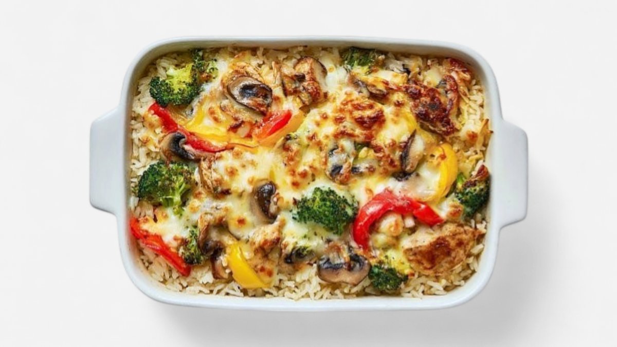 mit Hähnchenbrust, Champignons, Paprika, Brokkoli, Mais und Sahnesoße