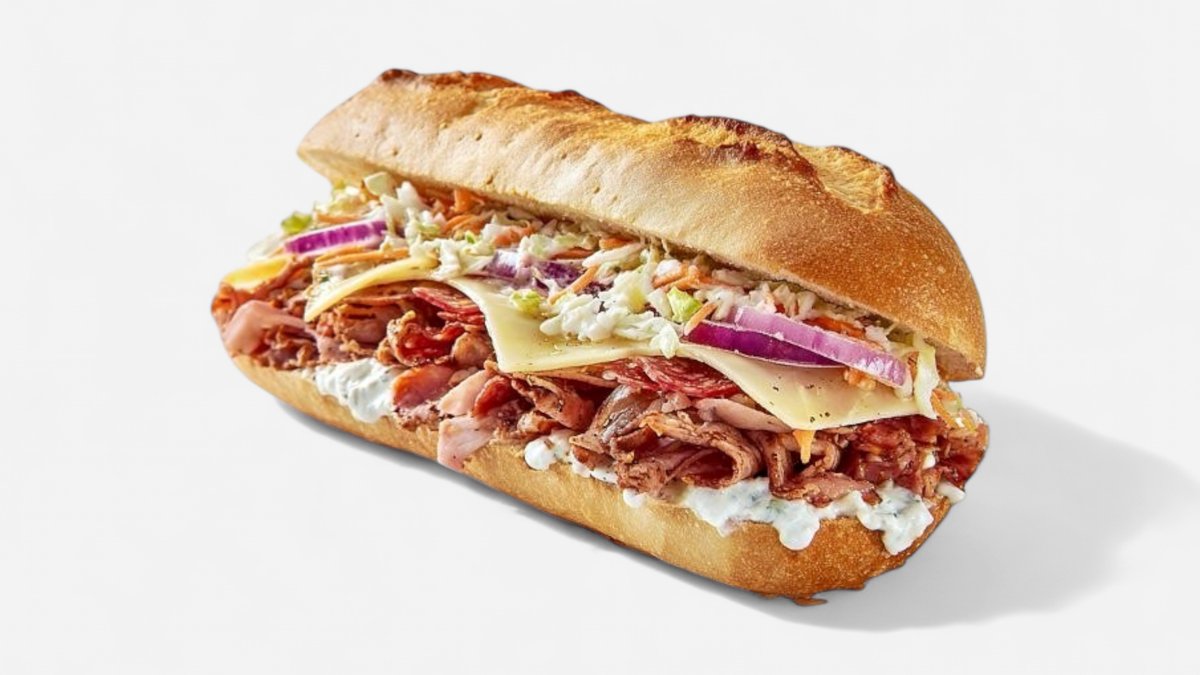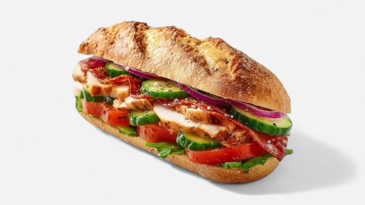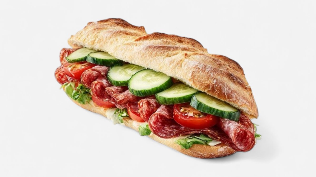 mit Salami, Tomaten, Gurken und Eisbergsalat